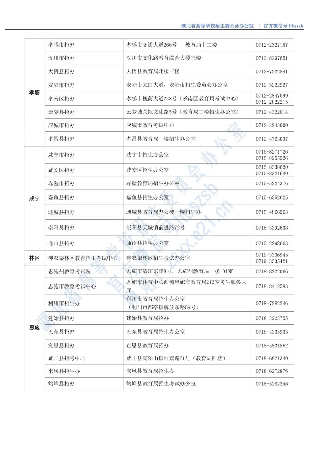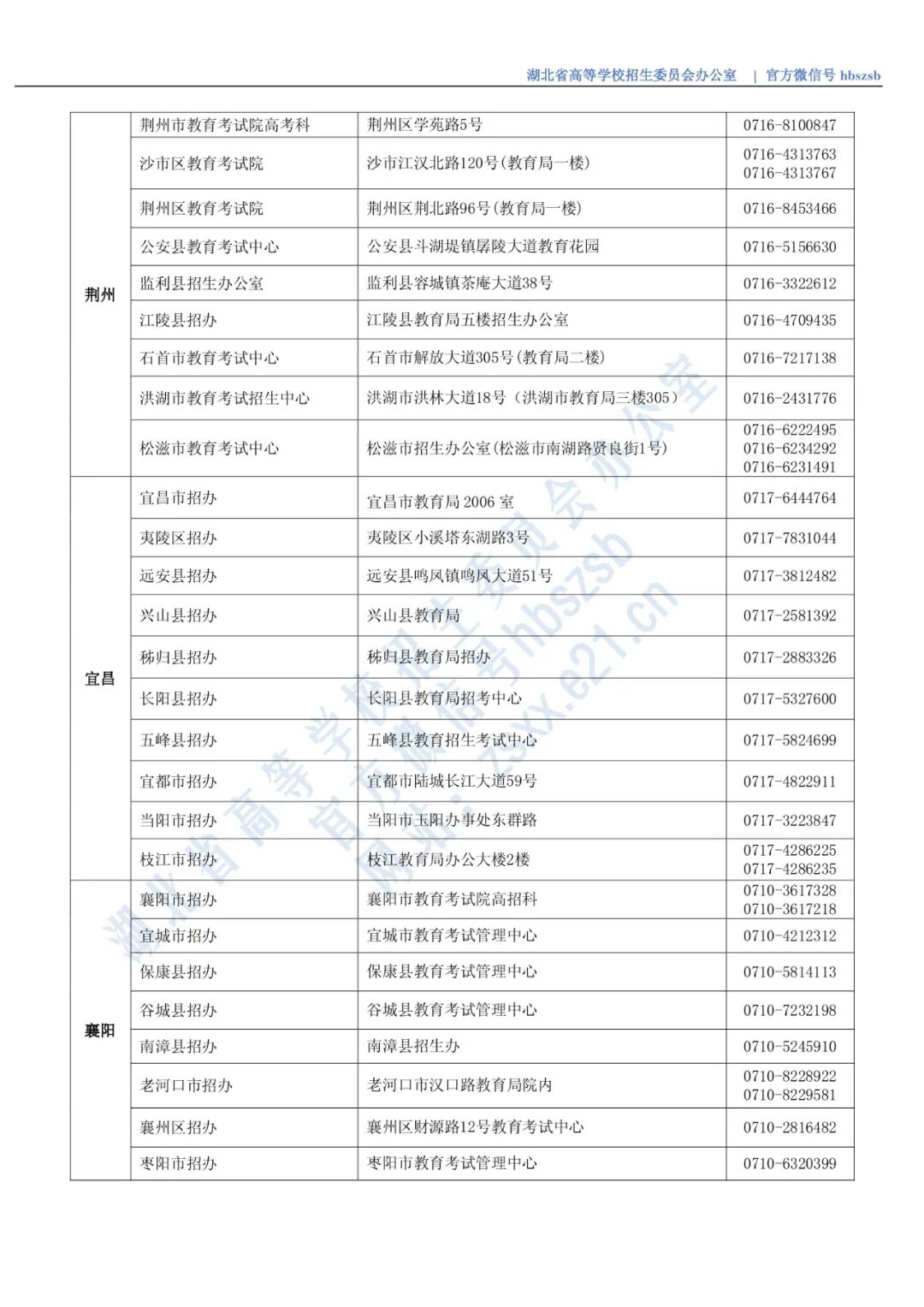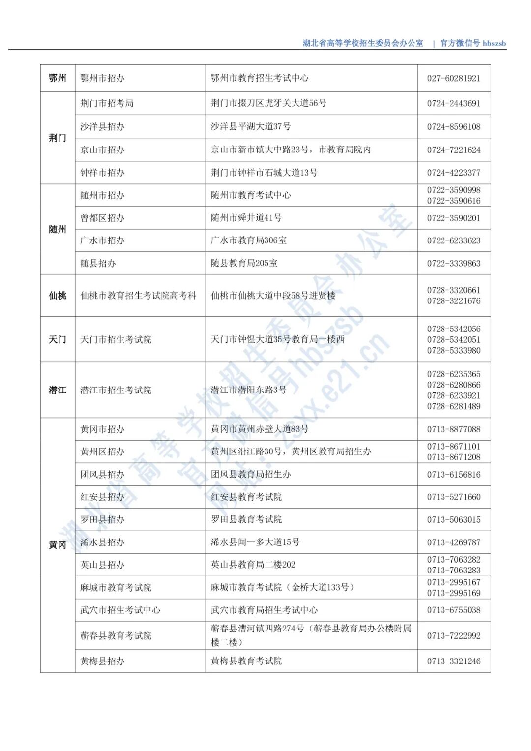 附:湖北省2020年市(县、区)招办咨询接待联系方式