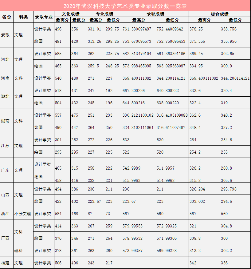 02武汉科技大学普通文理类分专业录取分数(湖北省)一览表