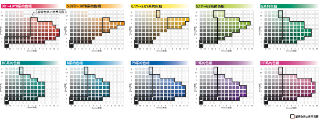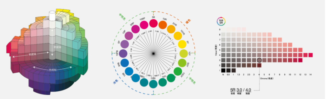 武汉市采用国际标准色彩体系——蒙塞尔色彩体系,即通过对色相、明度、艳度的数据化表示,区分和管理武汉市建筑色彩体系。下图是蒙塞尔色彩体系结构图。