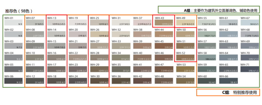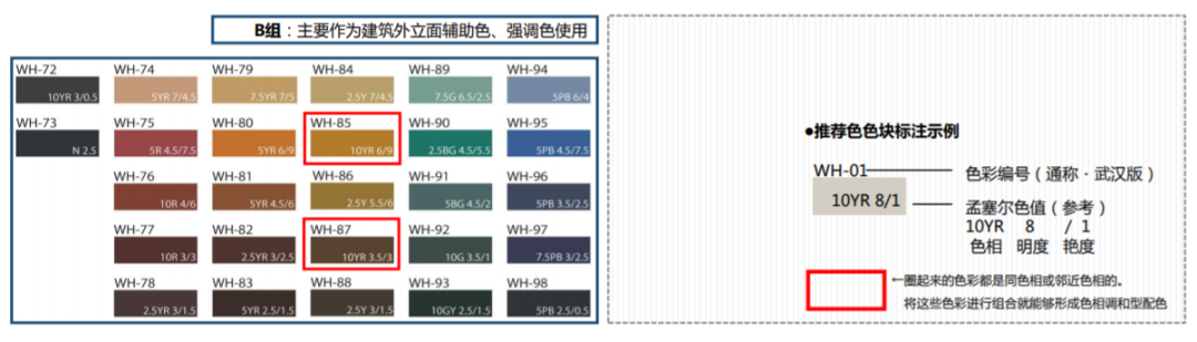 为兼顾共性和个性,项目组又在国际标准的万种色系中甄选了98色,作为武汉中心城区推荐色。